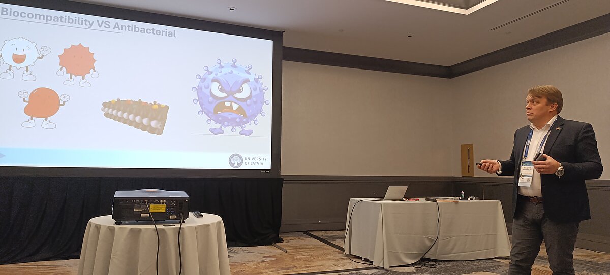 Dr. Maksym Pogorielov, Head of the Advanced Biomaterials and Biophysics Laboratory, took part in the MRS Fall Meeting & Exhibit (Boston, USA) with an invited talk titled ‘Antibacterial potential of MXenes: revisiting mechanisms and introducing photothermal precision strategies’. This presentation showcased recent data from the LZP project (nr. lzp-2023/1-0243) ‘Novel concept for targeted photothermal cancer treatment’, the MSCA-SE project MX-MAP, and the M-era.Net project AntiMicroMXene.