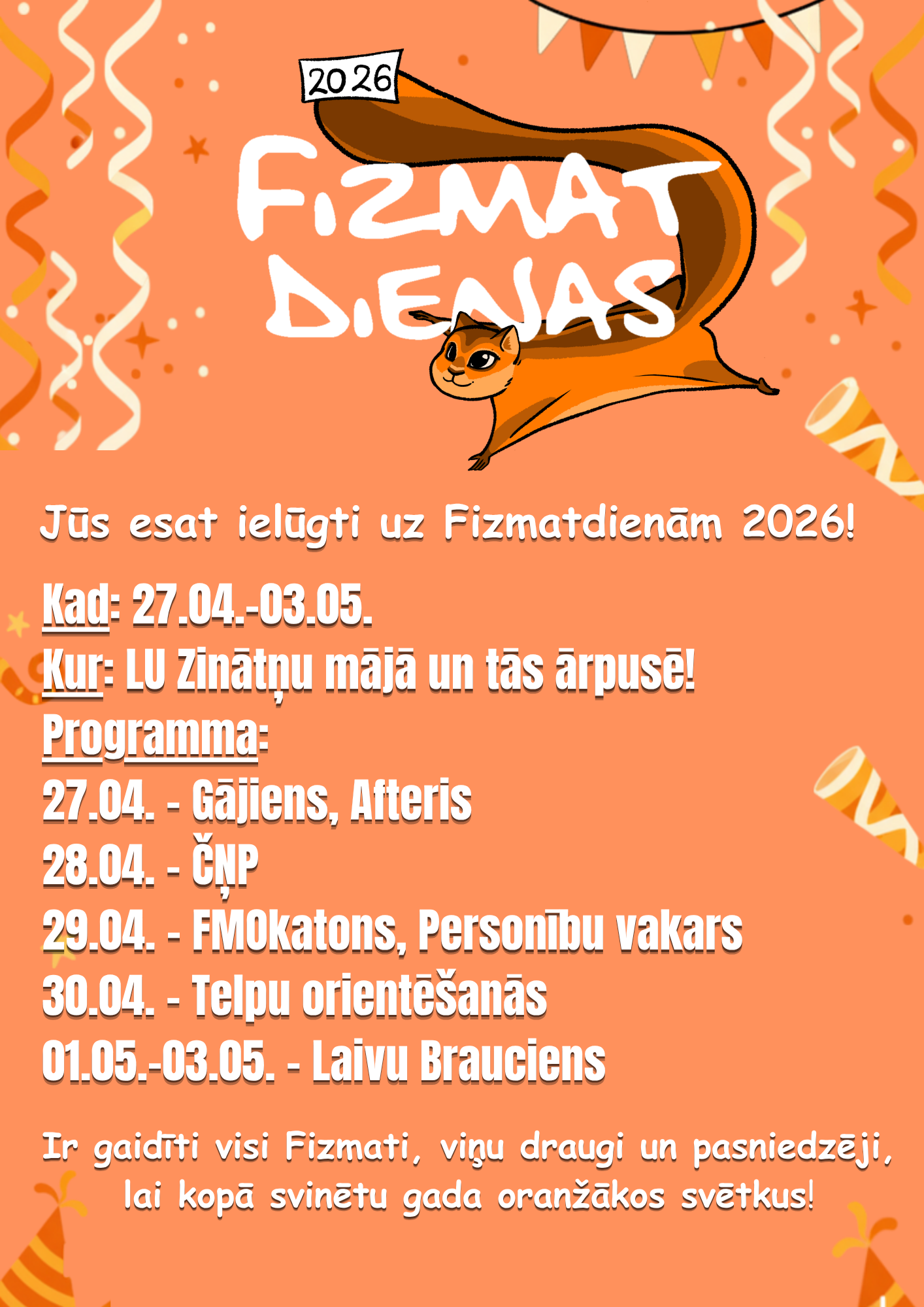 Fizmatdienas notiks visas nedēļas laikā no 27.aprīļa līdz 3.