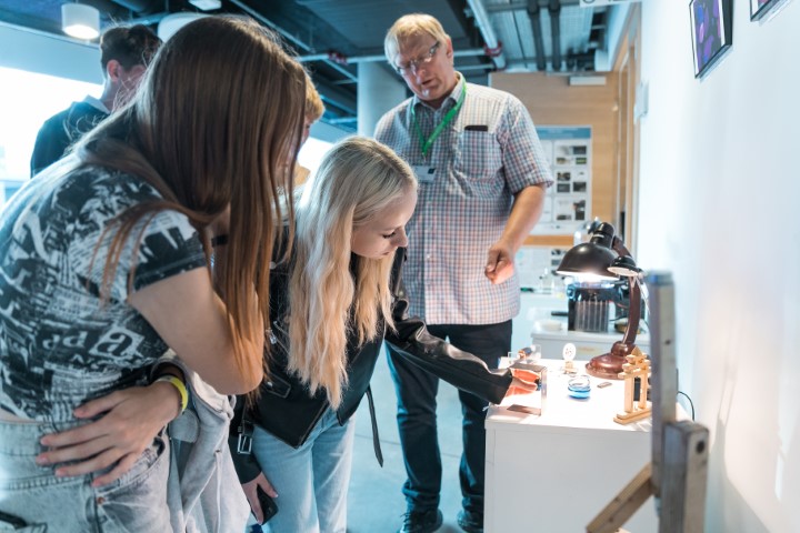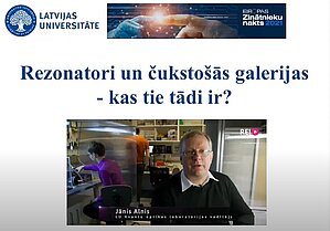 LU ASI Kvantu optikas laboratorijas laborants Arvīds Sedulis demonstrēja kā tiek veikta čukstošās galerijas modu mikrorezonatoru (turpmāk parauga) slīpēšana. Slīpēšanas sākumā paraugu ievieto speciālā, ar gaisu amortizētā virpā, kuras vibrācija ir maza, mērāma pāris simts nanometru mērogā. Slīpēšanā svarīgi procesu veikt pakāpeniski, lēnām, lai nesabojātu paraugu. Piemēram, lietojot organisko stiklu, formu var izveidot ar šādu vīlīti. Pēcāk izmanto arvien smalkāku smilšpapīru līdz kamerā nav iespējams ieraudzīt negludumus. Labākam rezultātam ieteicams mainīt papīru, to skalot, jo, kā var redzēt – šāds smilšpapīrs vairs nav piemērots veicamajam darbam. Ideālas virsmas iegūšanai to beigās pulē ar dimanta pastu, kas novērš kamerā neredzamus defektus. Turpinājumā LU ASI Kvantu optikas laboratorijas vadītājs, vadošais pētnieks Jānis Alnis demonstrēja alternatīvu pieeju ČGM (čukstošās galerijas modu) rezonatora formas iegūšanā ar CO2 lāzeru. Šī metode patērējot daudz mazāk laika, tāpēc mūsdienās to arvien plašāk izmanto slīpēšanas vietā. Princips patiesībā ir ļoti vienkāršs. Paraugu novieto uz virpas lāzera stara priekšā un rotē. Rotācija nodrošina to, ka lāzera stars vienmērīgi apkausē rezonātora abas puses un mēs iegūstam gala produktu. Uz vienas šķiedras gabala iespējams ātri uztaisīt vairākus šādus rezonātorus, no kuriem var pēcāk atlasīt vislabākos paraugus. Video skaties šeit.