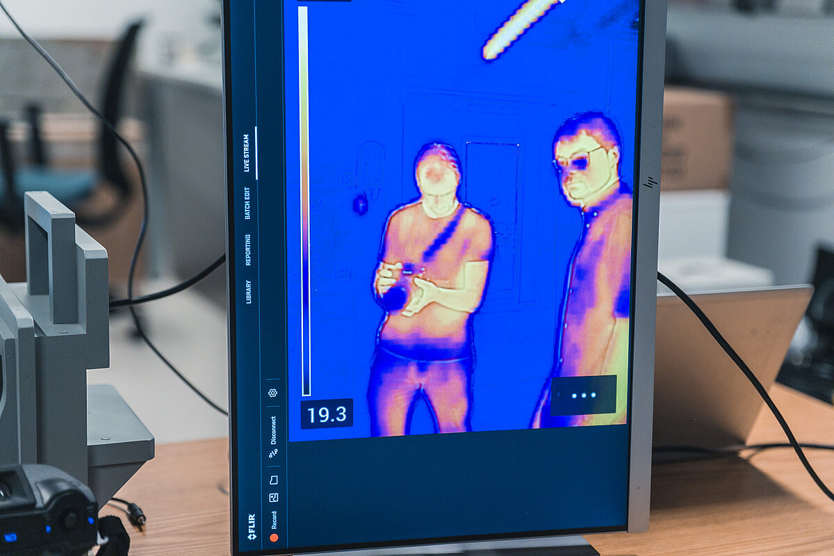 - Ierīce un metode aktīvās termogrāfijas un šaurjoslu spektroskopijas pielietojumam asinsrites monitoringā. Demonstrēta ierīce ādas temperatūras krāsu vizualizācijai, izmantojot termokameru un gaismas projektoru. Atdzesējot ādu ar aukstu priekšmetu (piem., ledus gabaliņu), būs iespējams ieraudzīt, kā mainās ādas temperatūra un tās asinsrite. Asinsrites izmaiņas ir labi redzamas zaļā spektra 540nm diapazonā. (Uldis Rubīns, FLPP Nr.lzp-2024/1-0501 ‘Multimodāla optiska attēlveide personalizētai mikrocirkulācijas hemodinamiskā fenotipa noteikšanai septiskiem pacientiem’)