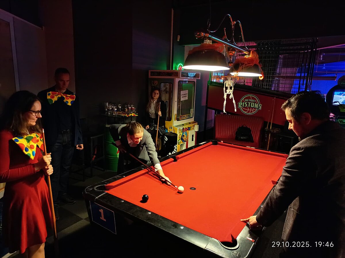 Pēc boulinga spēles bija iespēja izaicināt sevi arī cita veida disciplīnās, piemēram, šautriņu mešanā un biljardā. Ar prieku jāpaziņo, ka ASI meiteņu komanda, ko pārstāvēja Ilze Irbe un Emīlija Vija Ploriņa, meistarīgi sakāva puišu komandu, ko pārstāvēja Uldis Rubīns un Edgars Kviesis-Kipge, biljarda spēlē.