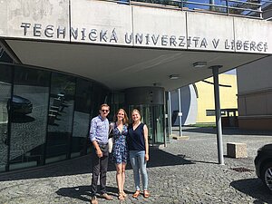 Zinātniekus viesmīlīgi uzņēma kompānijas "Nanopharma" filiālē, kura atrodas Liberecas Tehniskās Universitātes telpās. Pētniecības un attīstības daļas vadītāja vietniece Marketa Kličova (attēlā vidū) vizītes laikā Dainai un Kārlim sniedza plašu ieskatu par uzņēmuma un universitātes veiksmīgo sadarbību.